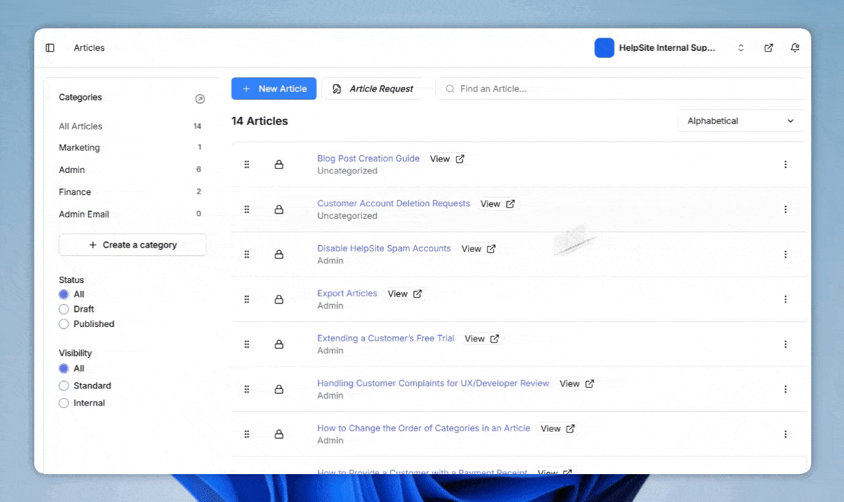 - Articles can be assigned to specific team members to help clarify ownership and keep your content process organized.