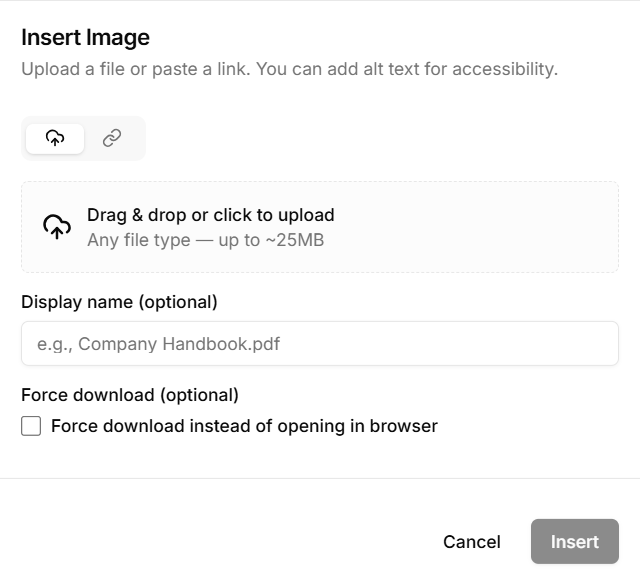 Uploading / embedding images in articles